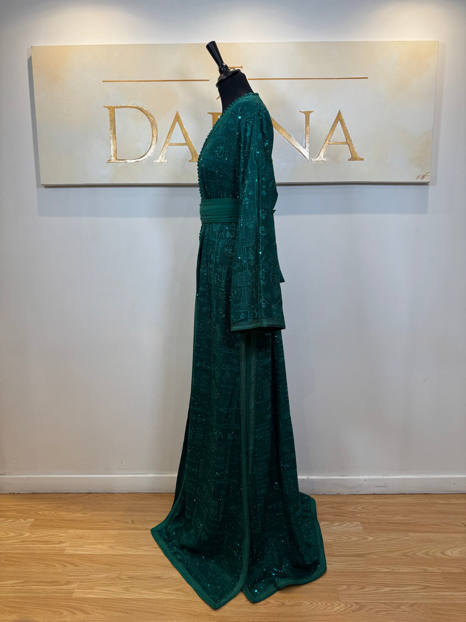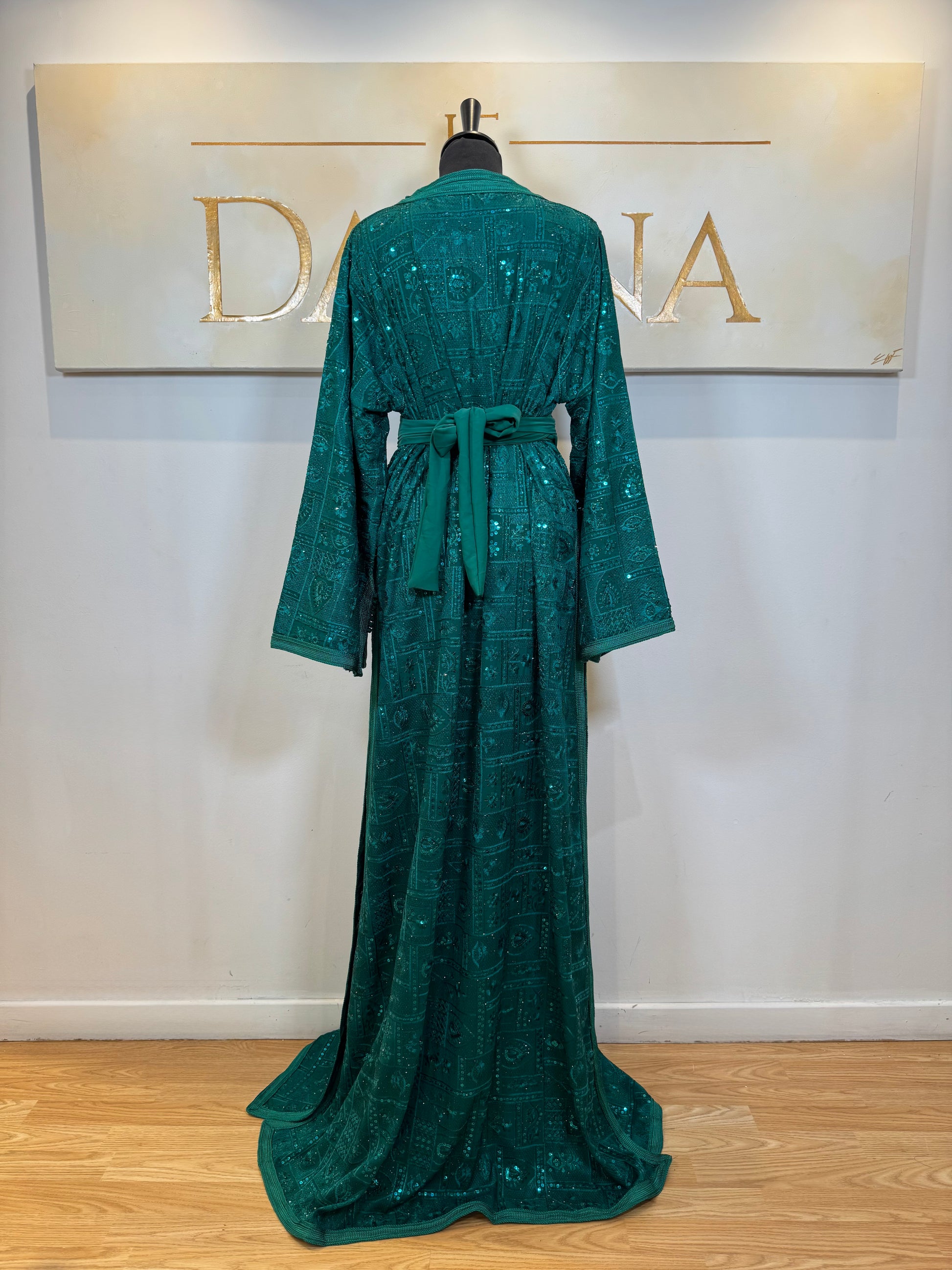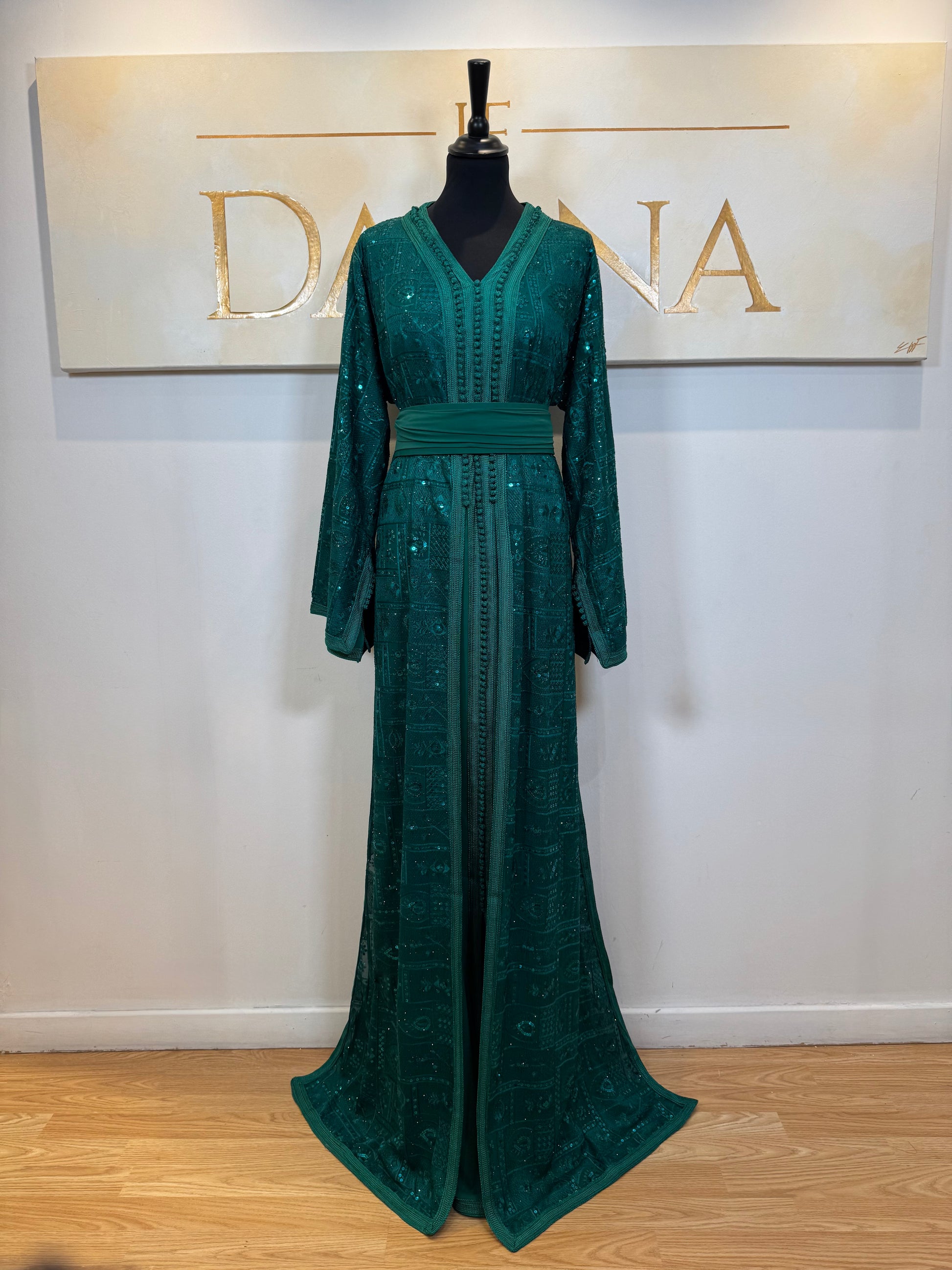 Le modèle Alya est une robe longue élégante, sublimée par des broderies délicates intégrées et une ceinture assortiequi structure la silhouette avec finesse. Sa coupe fluide offre un tombé naturel, idéal pour les cérémonies, fêtes et événements habillés.