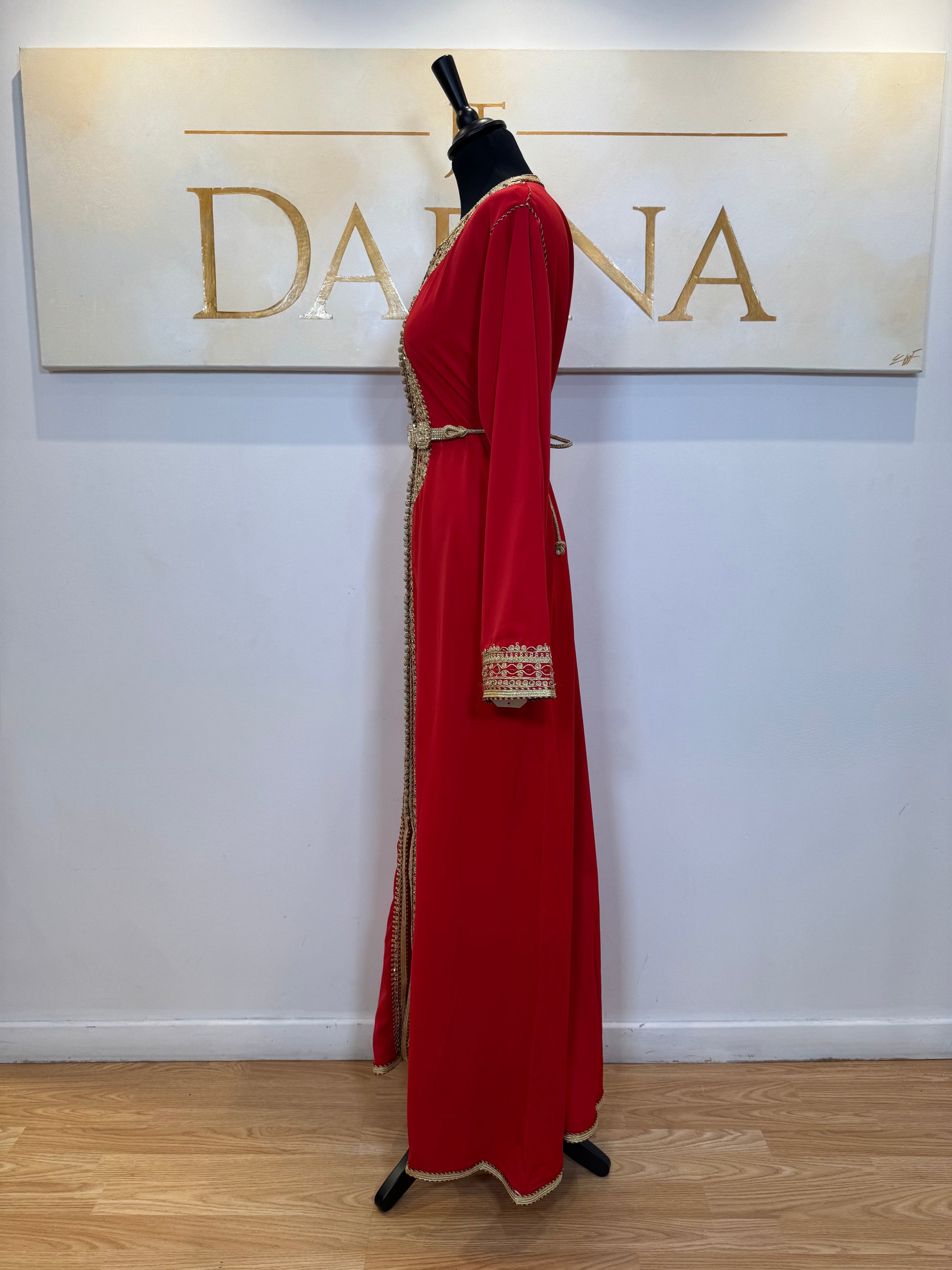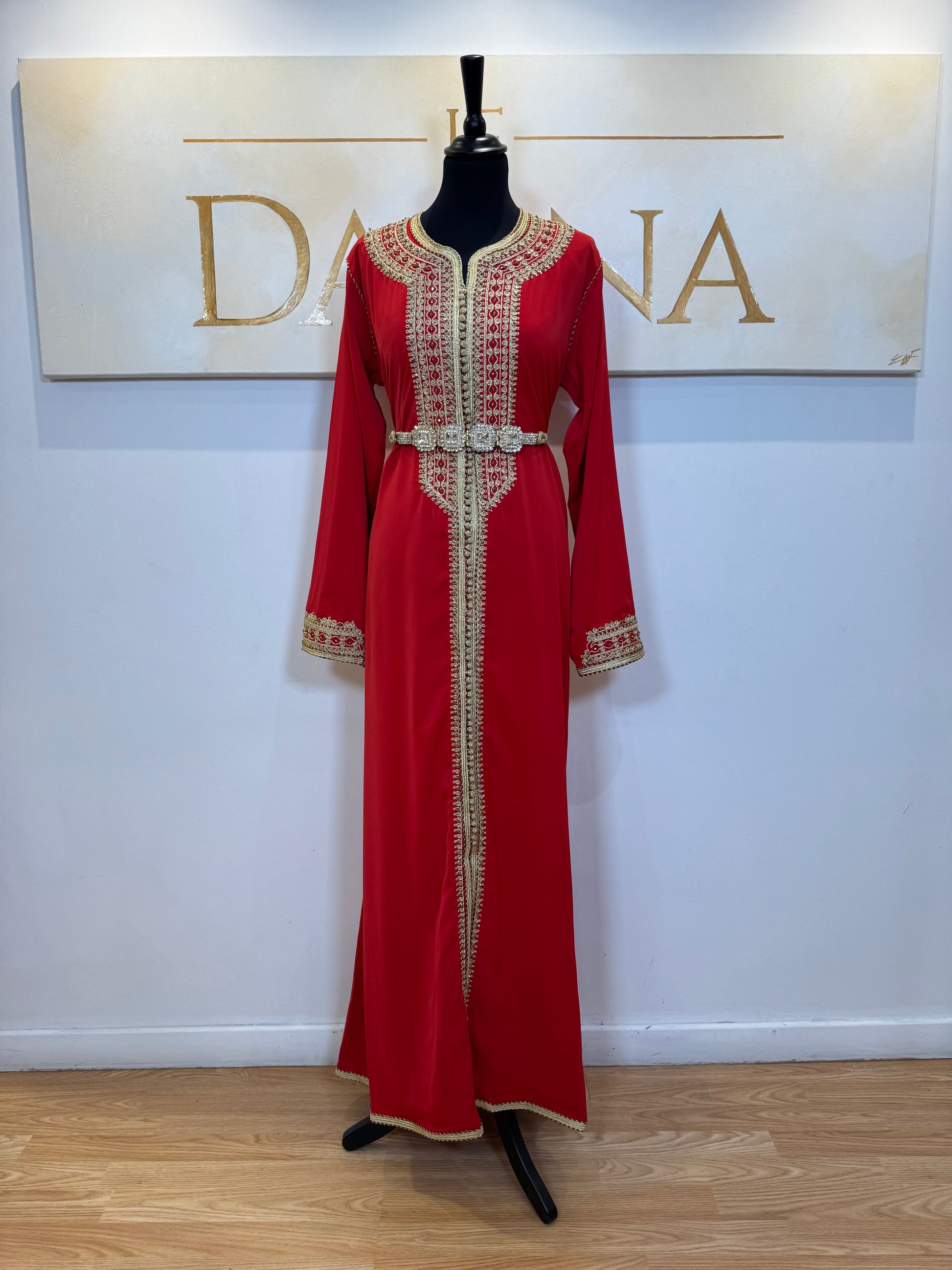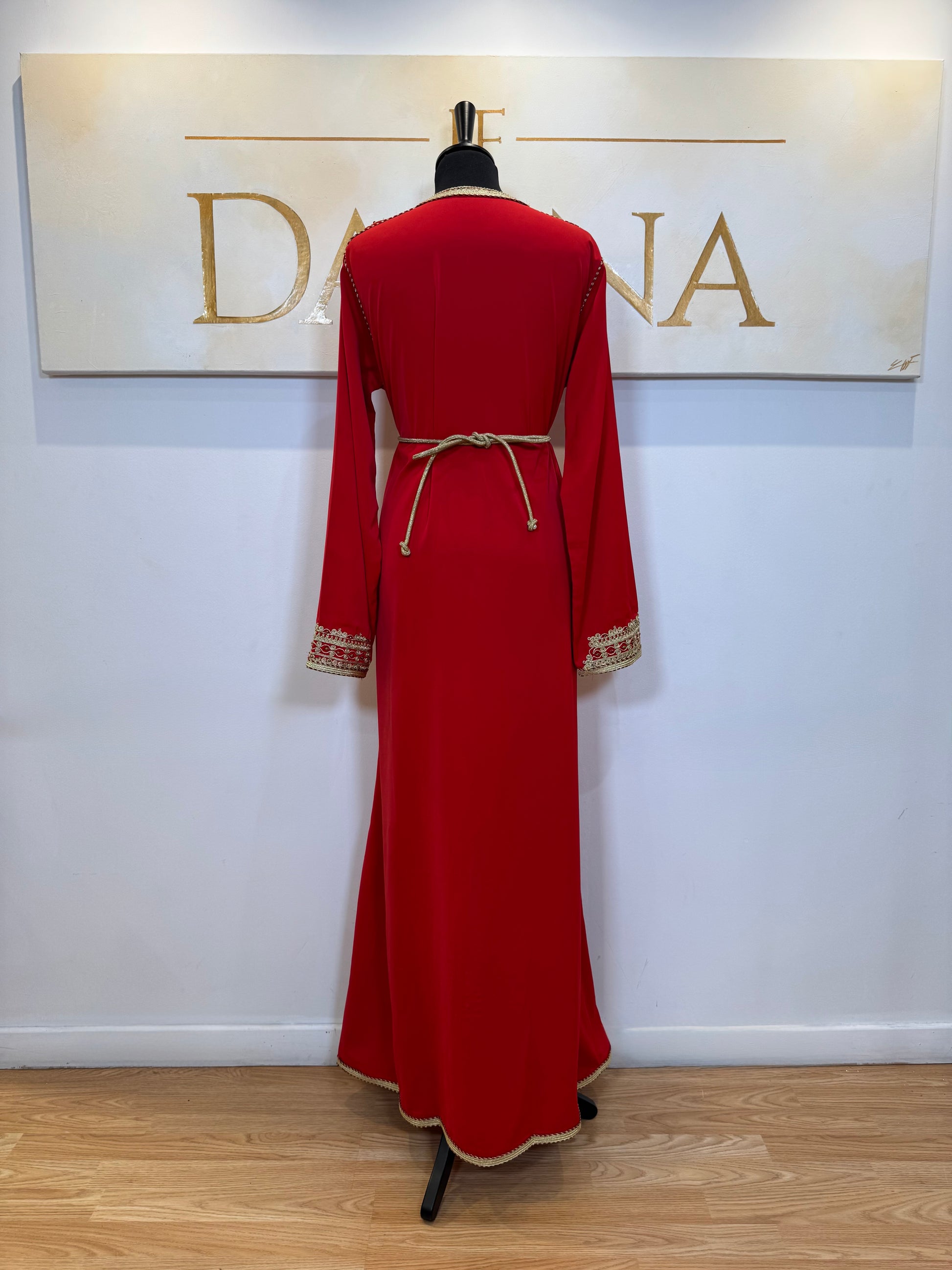 Le modèle Amina se caractérise par une broderie centrale délicate qui allonge visuellement la silhouette et apporte une élégance discrète. Sa ligne épurée met en valeur la fluidité du tissu, tandis que les finitions brodées au col et aux poignets ajoutent une touche soignée sans surcharger l’ensemble.