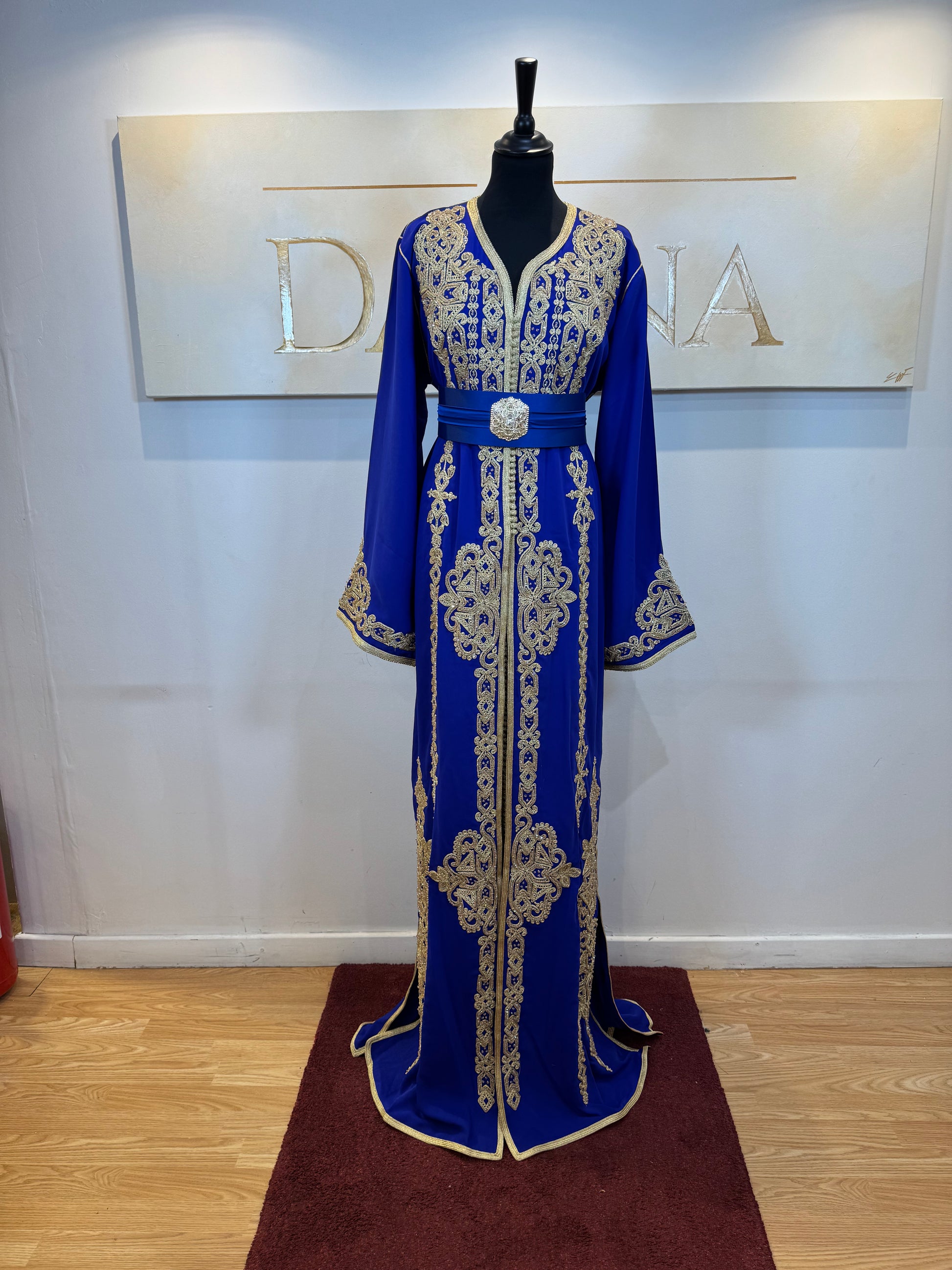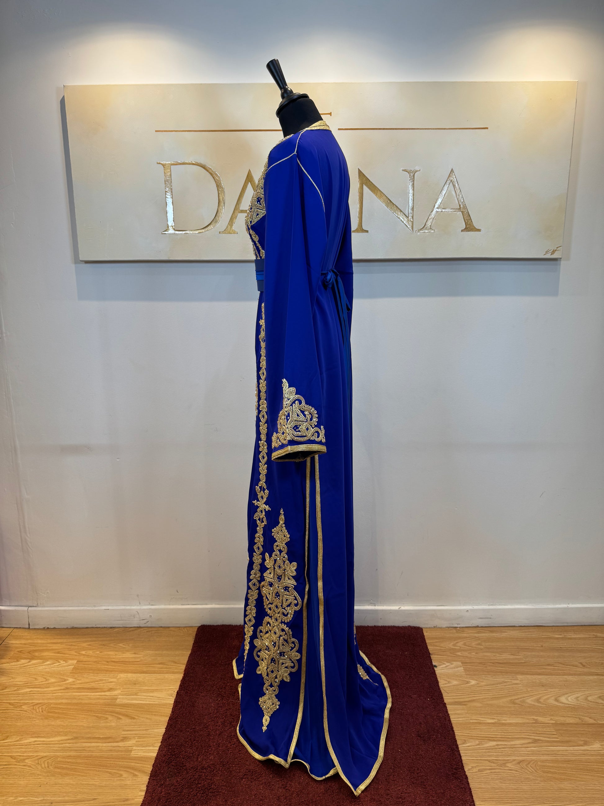 Le modèle Impéria est une robe longue élégante, sublimée par des broderies dorées richement travaillées qui apportent une allure noble et sophistiquée. Sa coupe fluide offre un tombé naturel et une silhouette élancée, idéale pour les cérémonies et événements habillés.