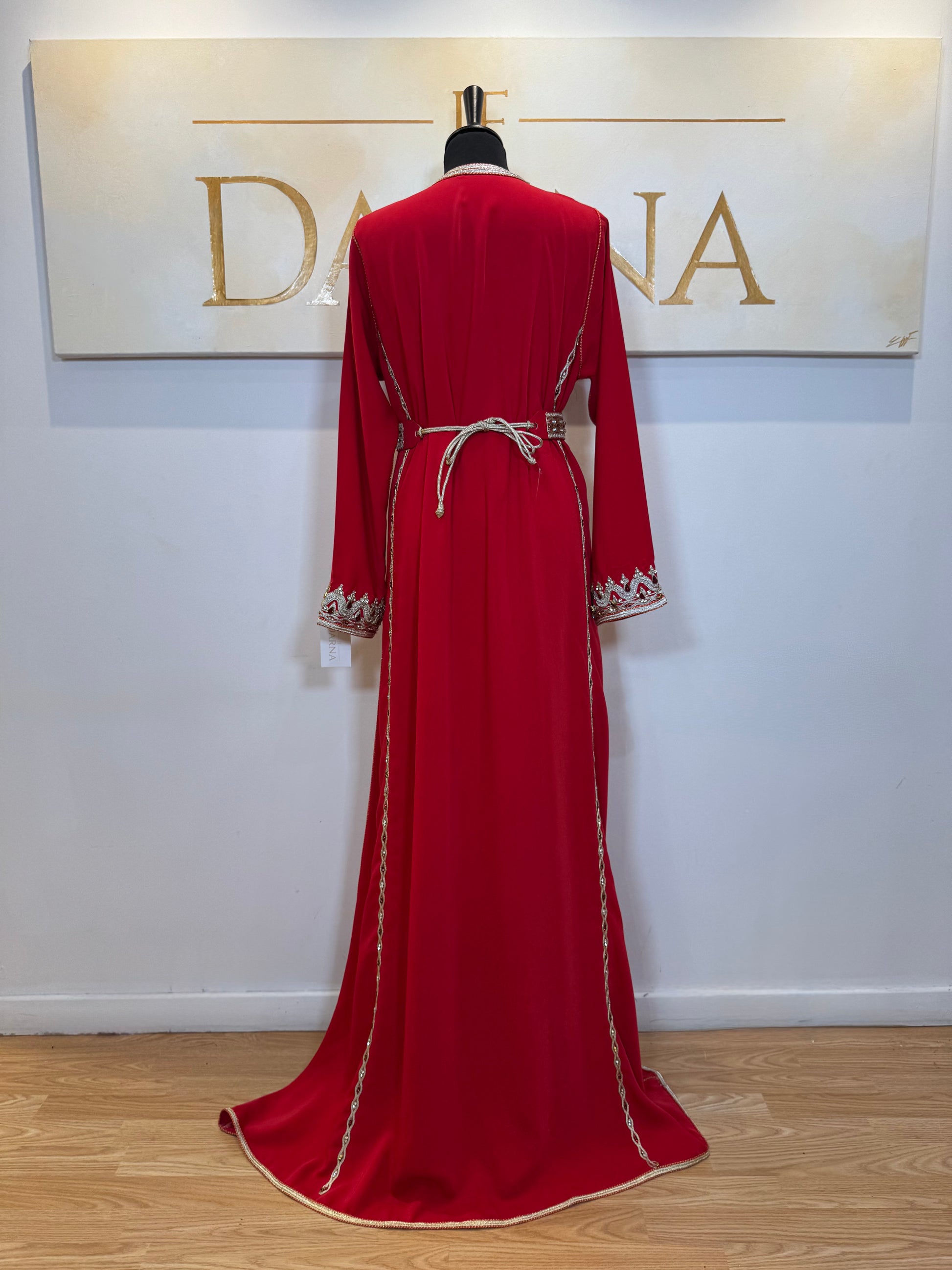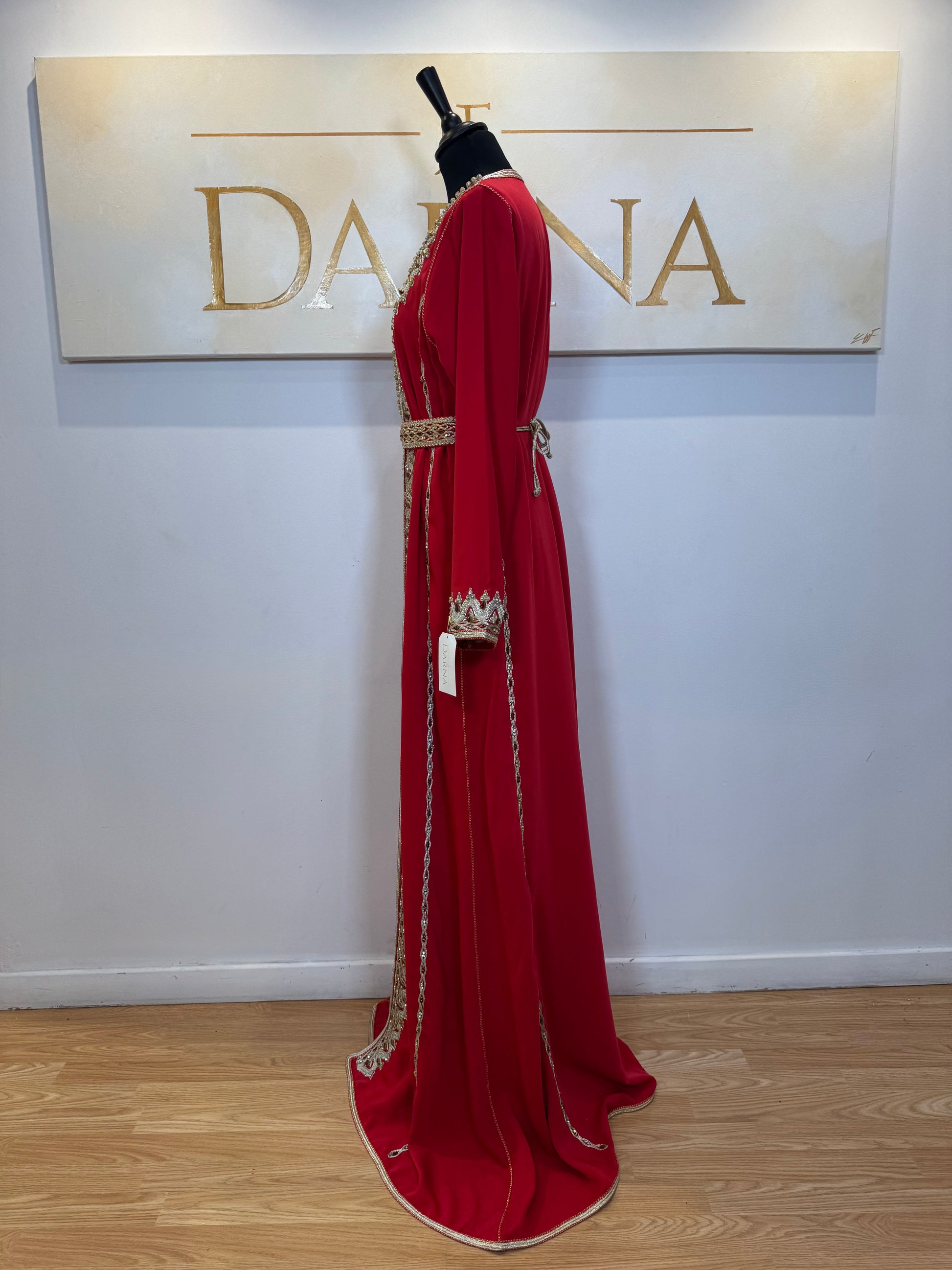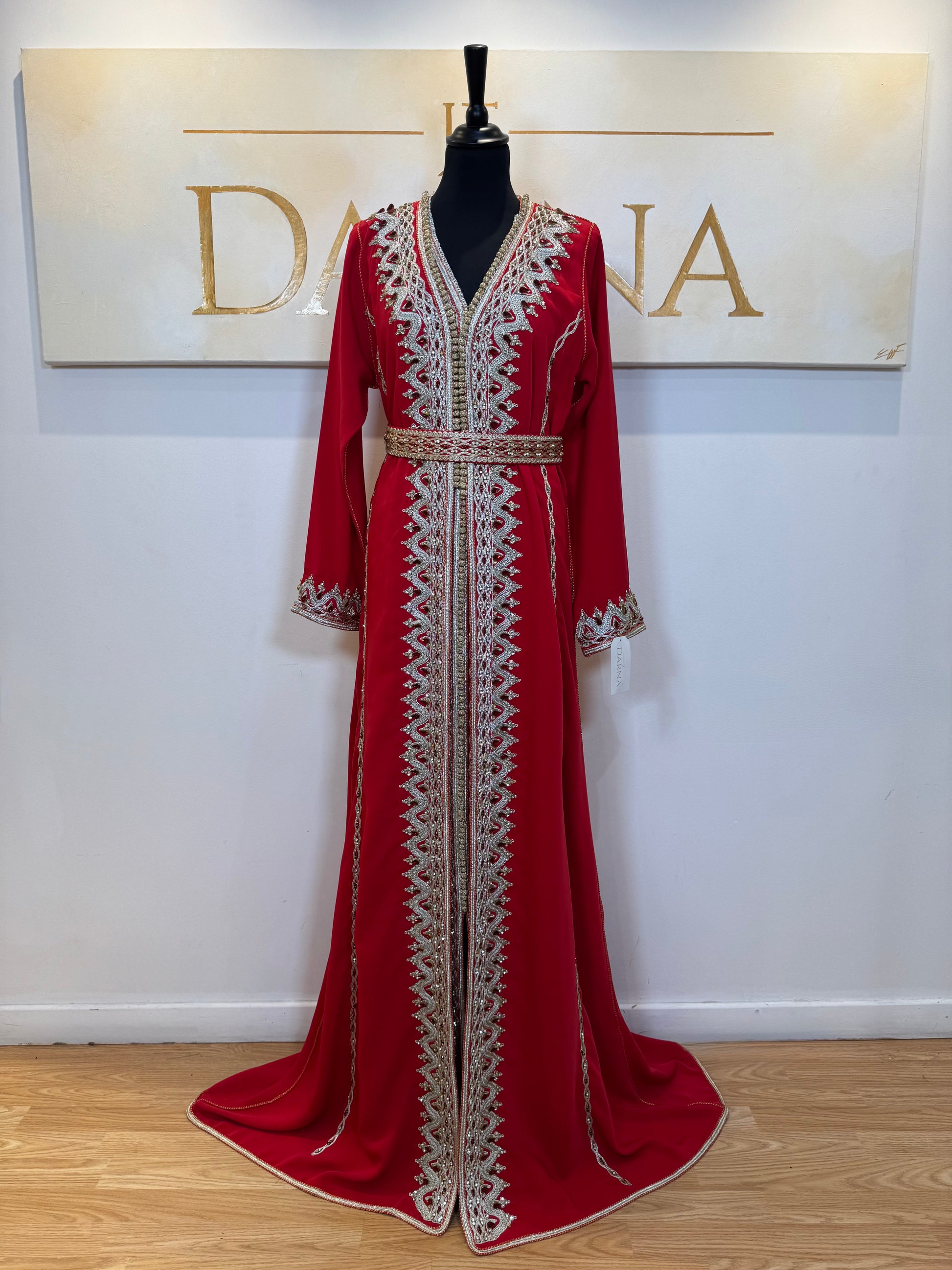 La ceinture est intégrée au modèle et permet de structurer la taille avec subtilité, tout en s’harmonisant parfaitement avec les broderies. Inaya offre un équilibre élégant entre tradition et sophistication.