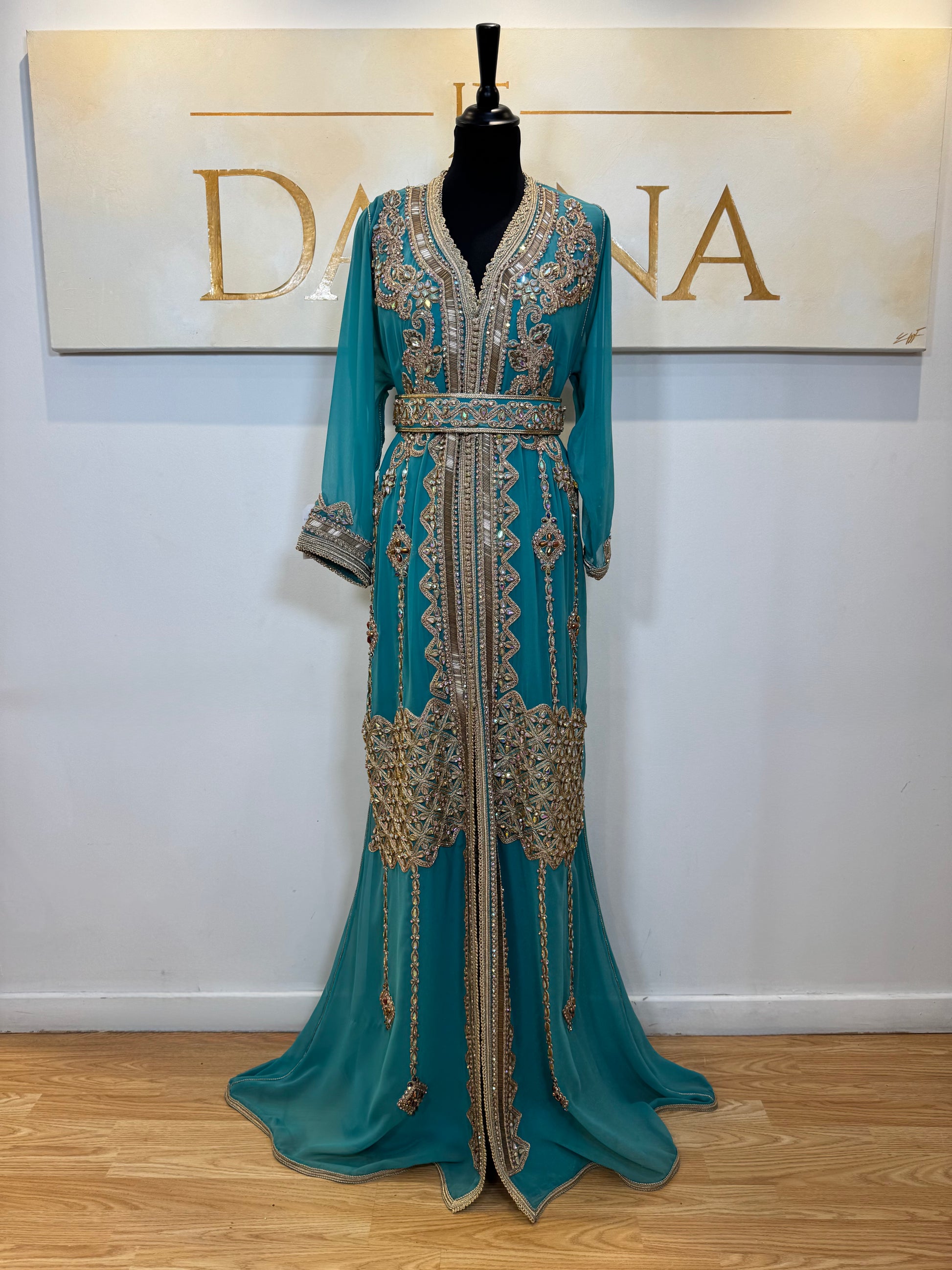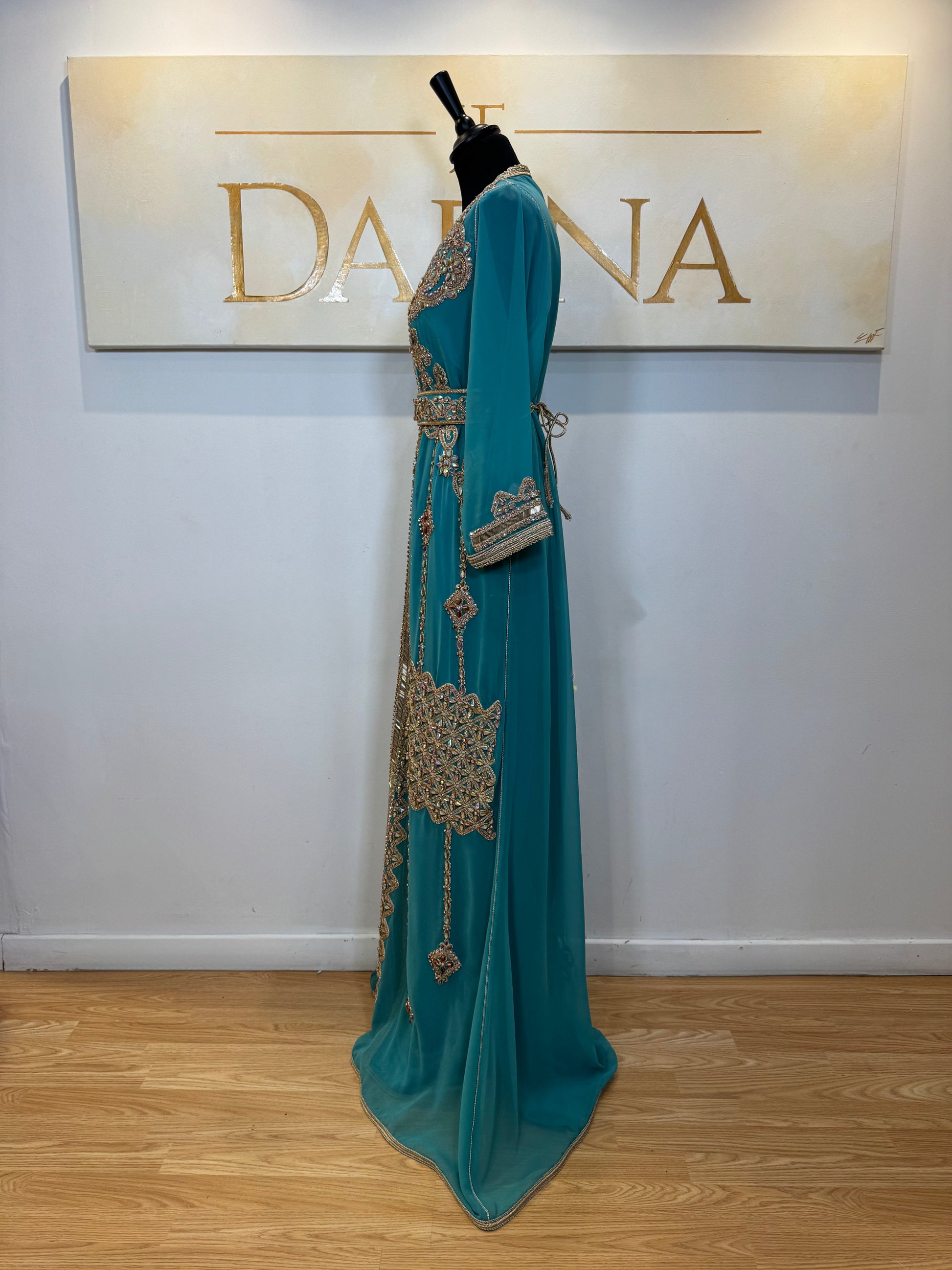 Le modèle Lamia se distingue par son jeu de broderies géométriques et florales, finement travaillées, qui structurent la silhouette avec élégance. Sa teinte profonde apporte une présence forte, sublimée par des détails brodés riches à l’avant comme à l’arrière.