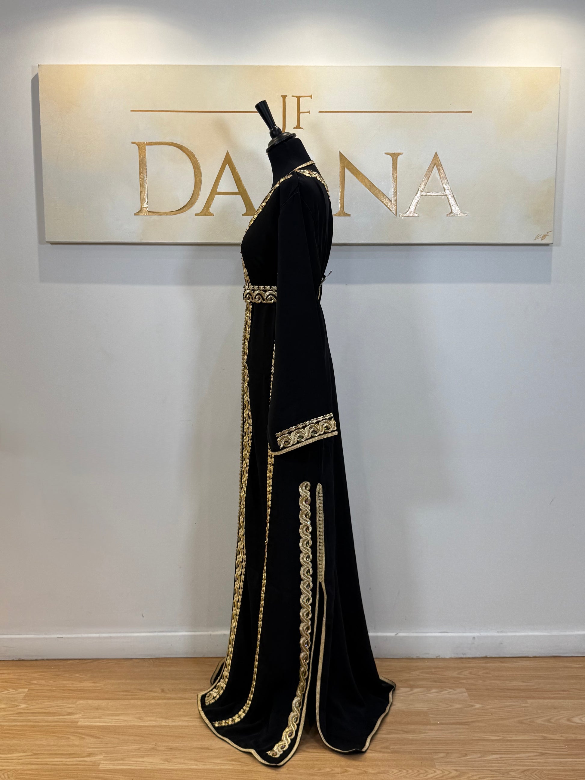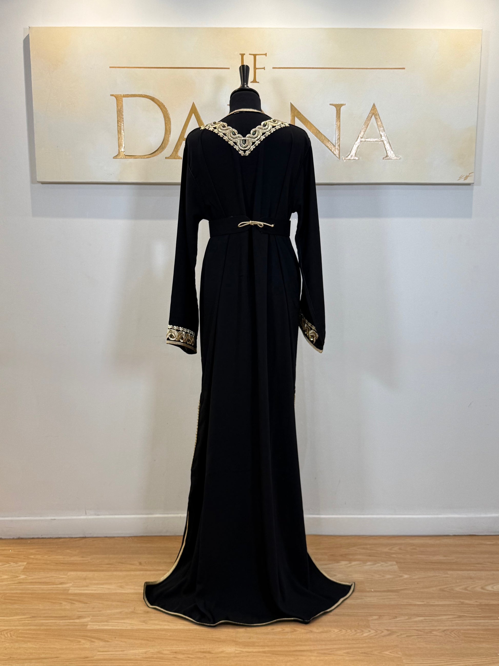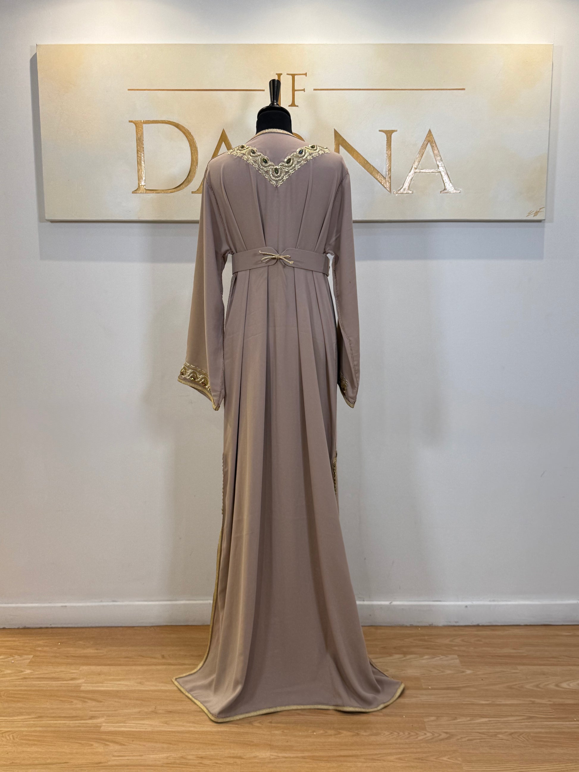 Le modèle Lina est une robe élégante, sublimée par des broderies dorées intégrées qui soulignent la silhouette avec finesse. Sa coupe fluide offre un tombé naturel, idéal pour les cérémonies et événements habillés.