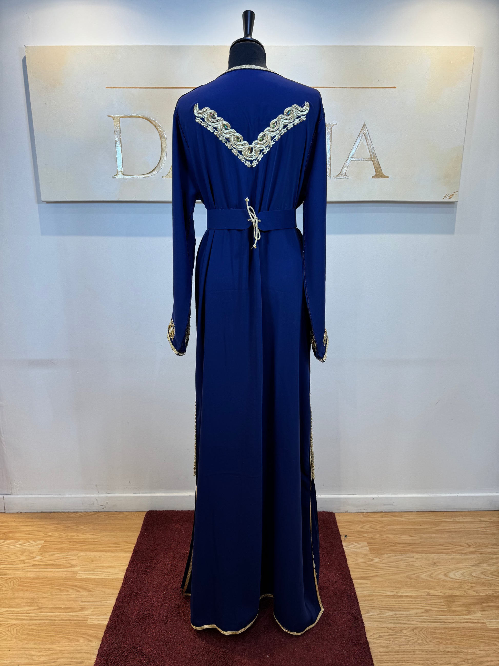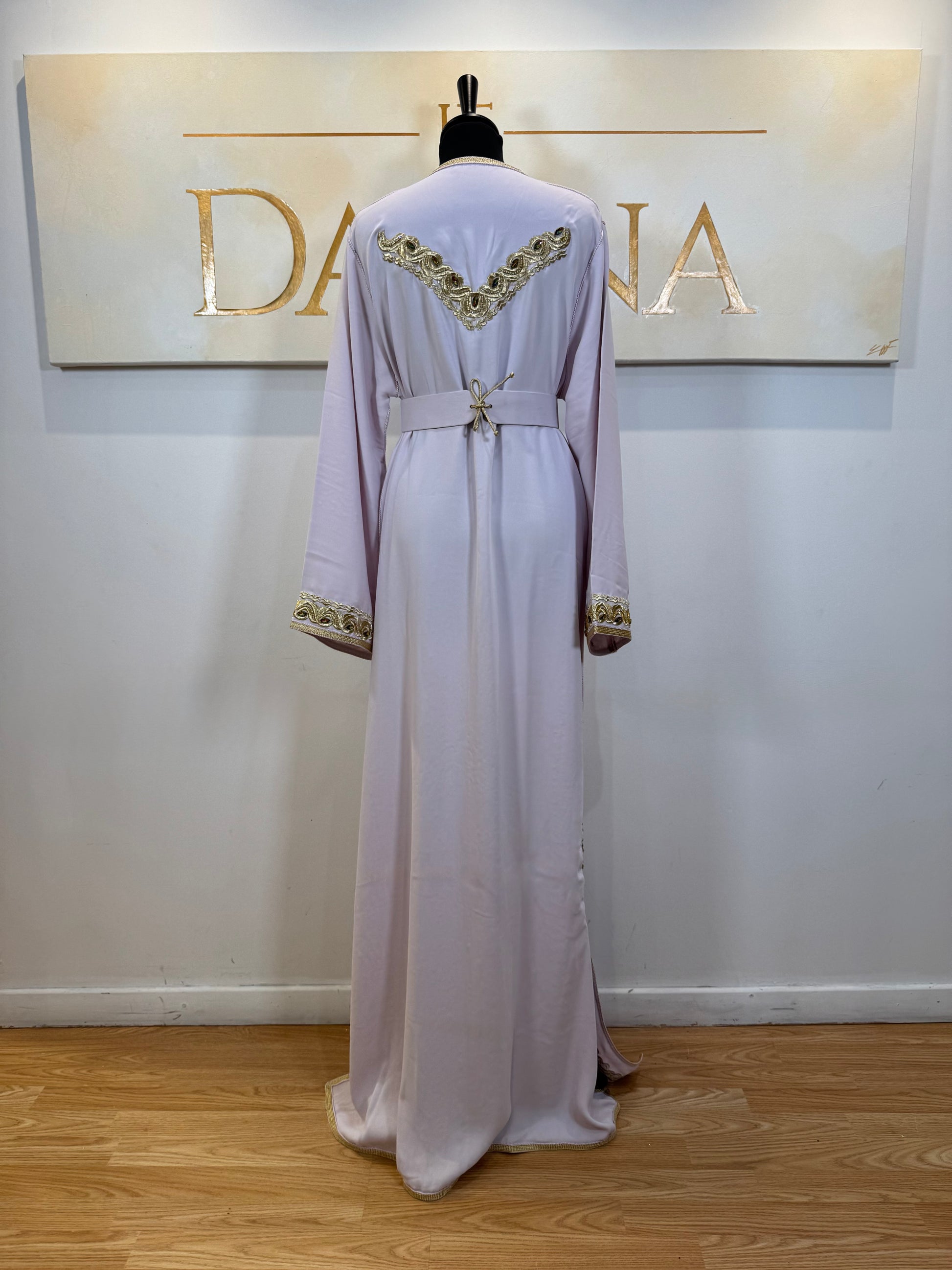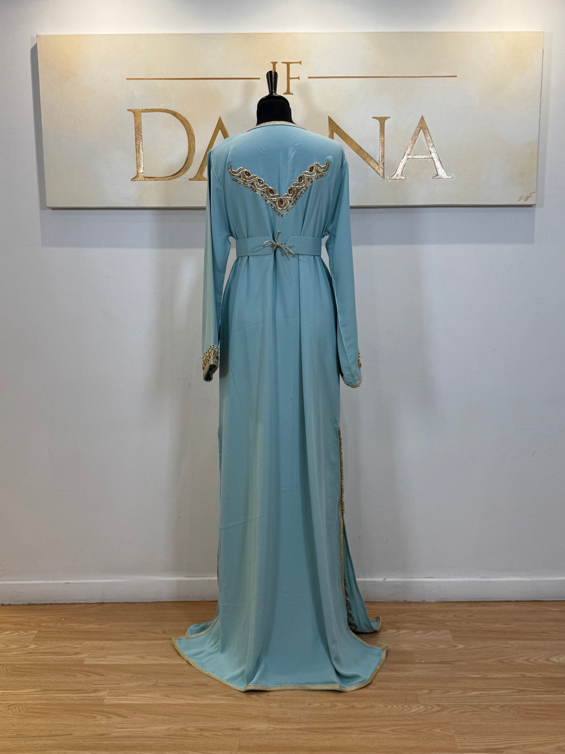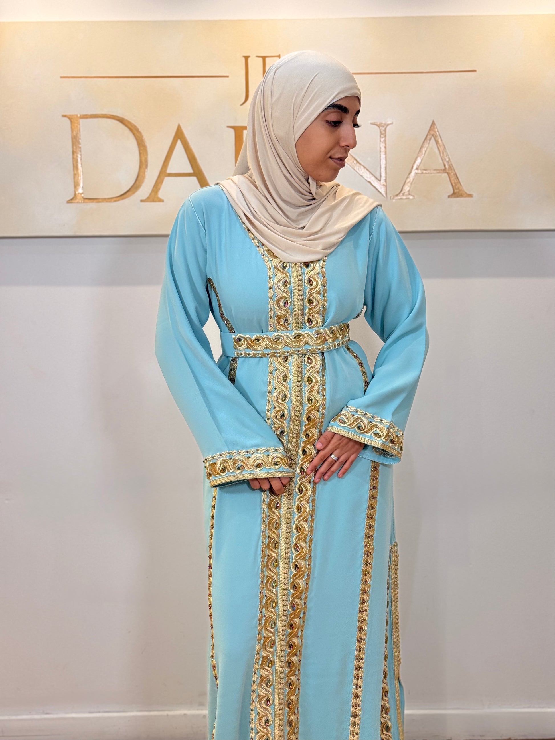 Le modèle Lina est une robe élégante, sublimée par des broderies dorées intégrées qui soulignent la silhouette avec finesse. Sa coupe fluide offre un tombé naturel, idéal pour les cérémonies et événements habillés.