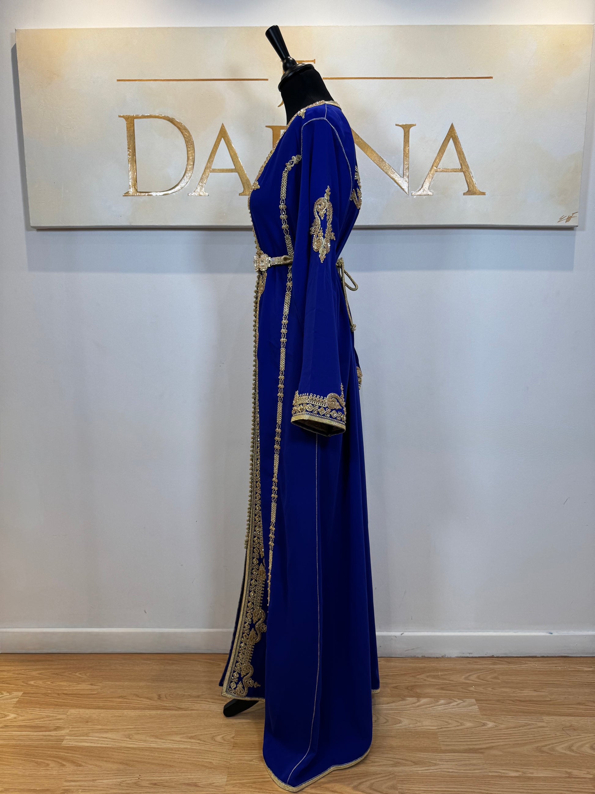 Le modèle Loubna séduit par son élégance intemporelle et la finesse de ses broderies dorées qui structurent la silhouette avec délicatesse. Son tissu fluide et sa coupe longue offrent un tombé raffiné, idéal pour les occasions habillées comme les cérémonies ou événements spéciaux.
