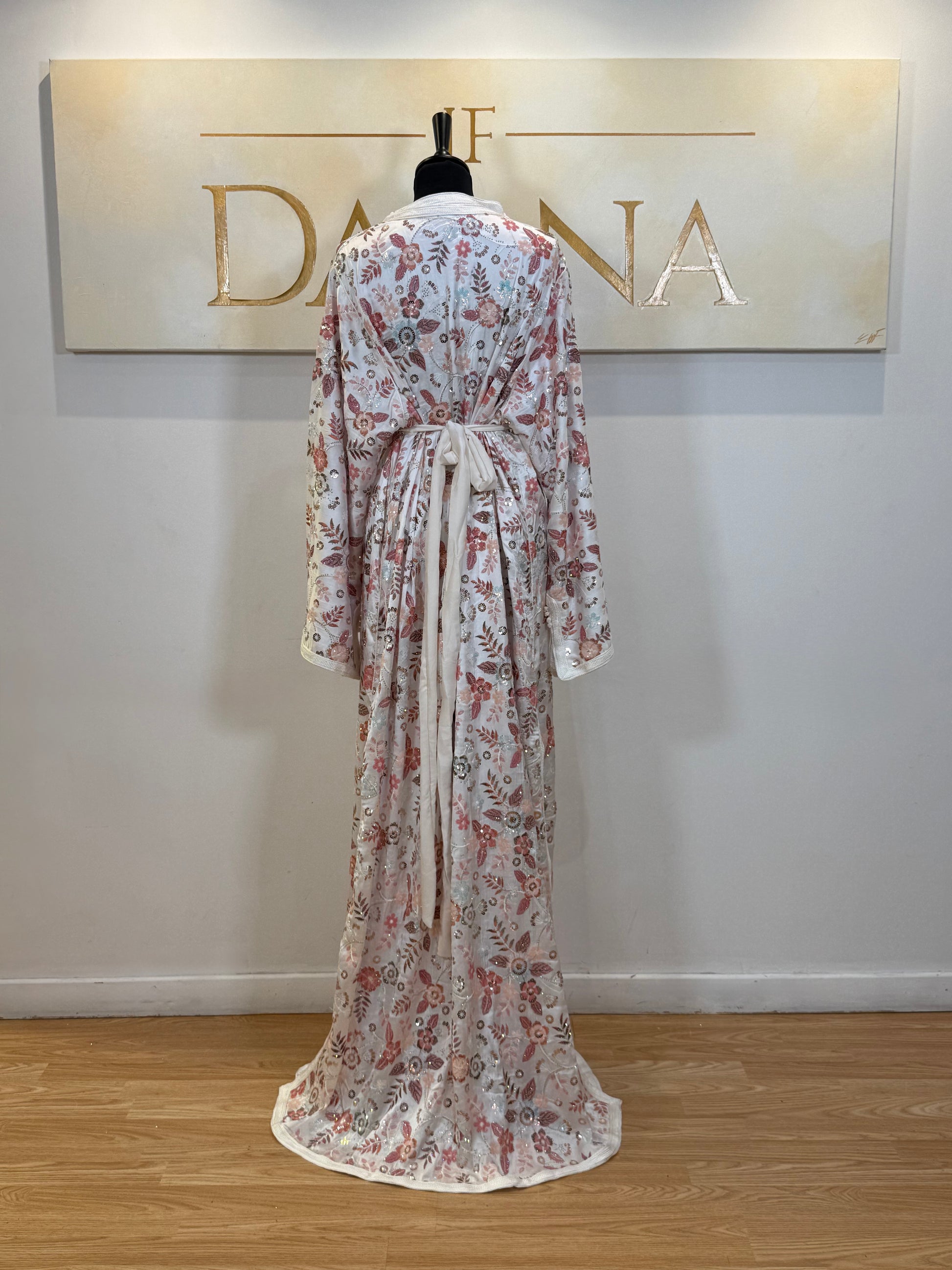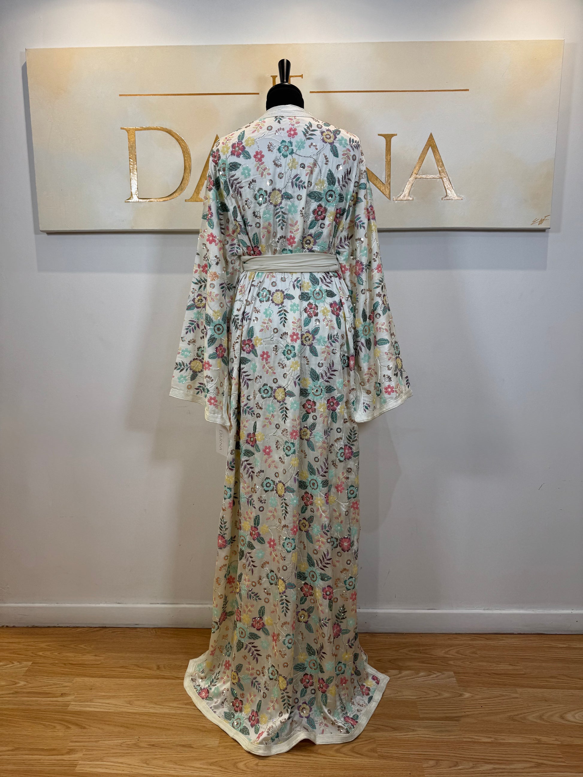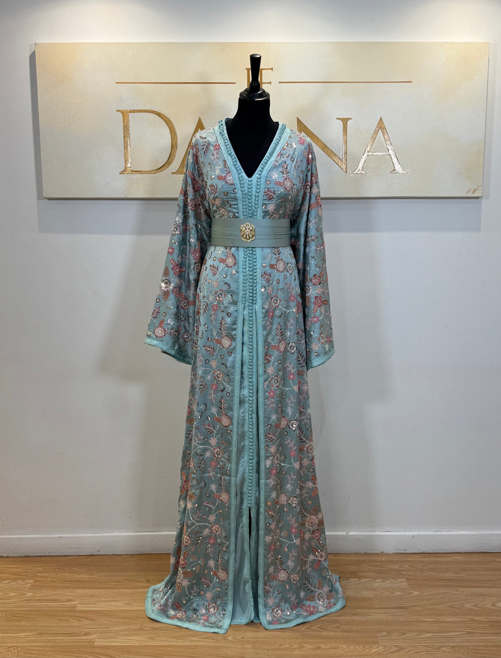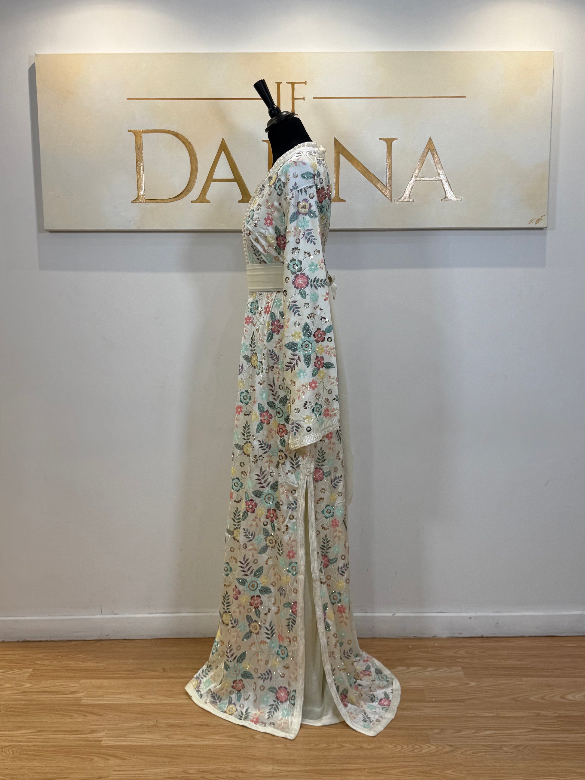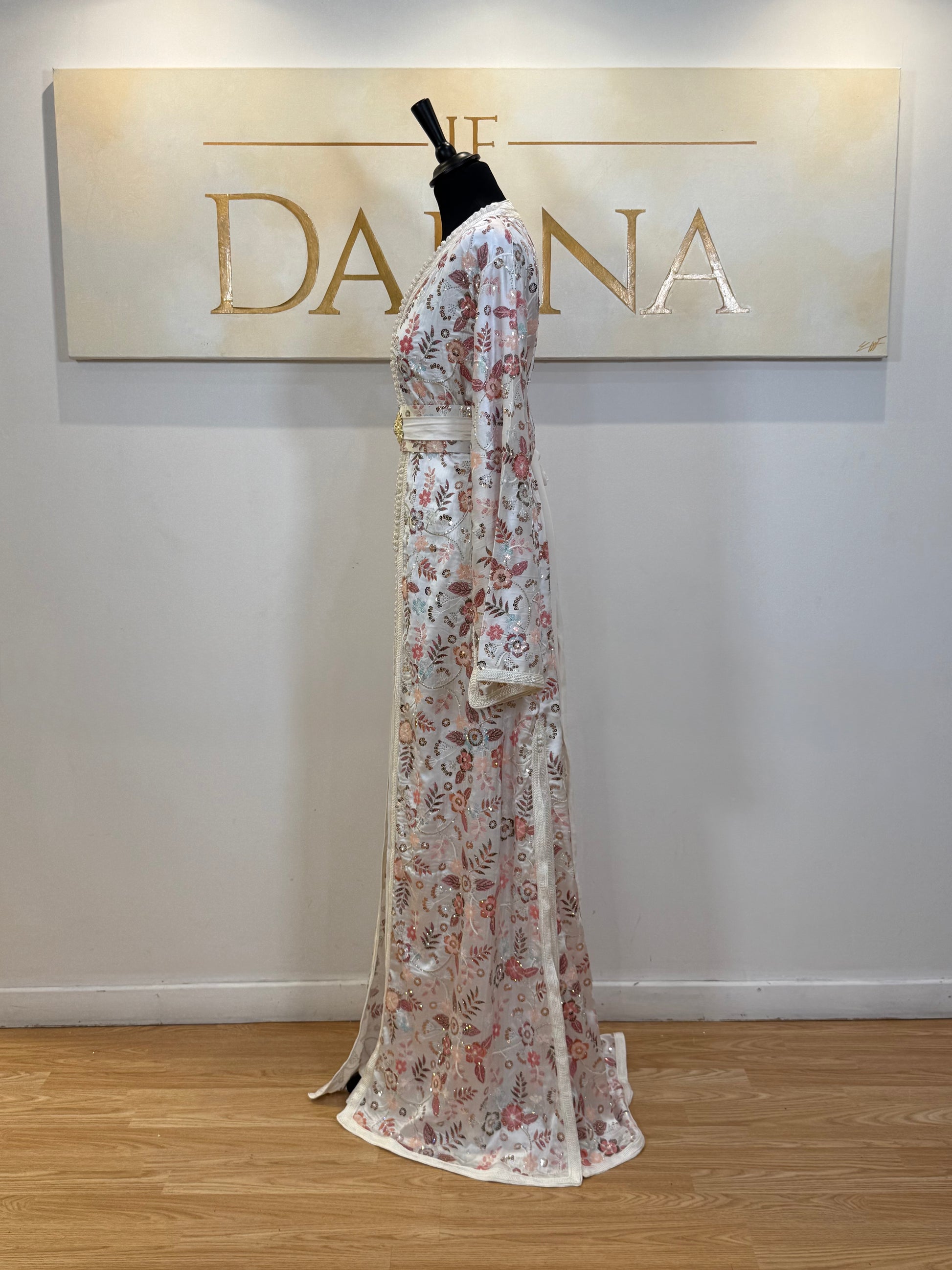 Le modèle Zahra séduit par son tissu délicatement brodé aux motifs floraux, offrant une allure douce et élégante. Sa teinte lumineuse associée aux finitions soignées apporte une touche raffinée, idéale pour une tenue habillée tout en légèreté.