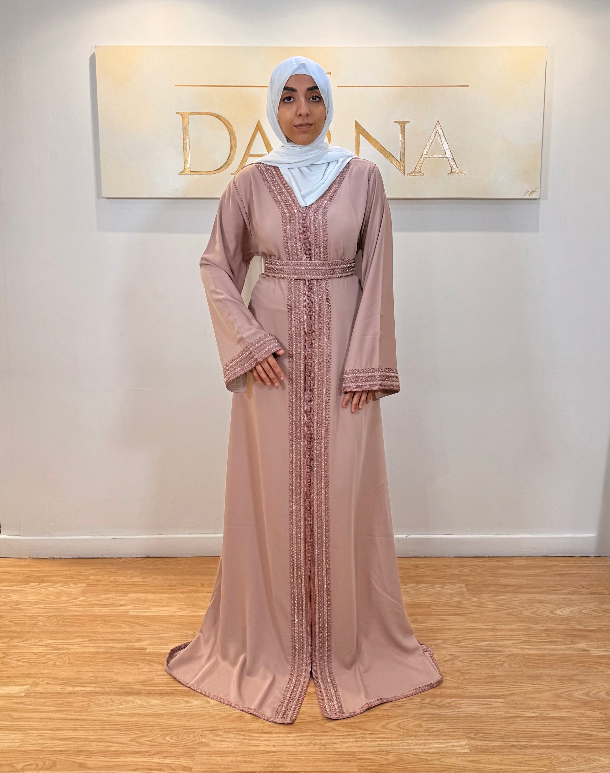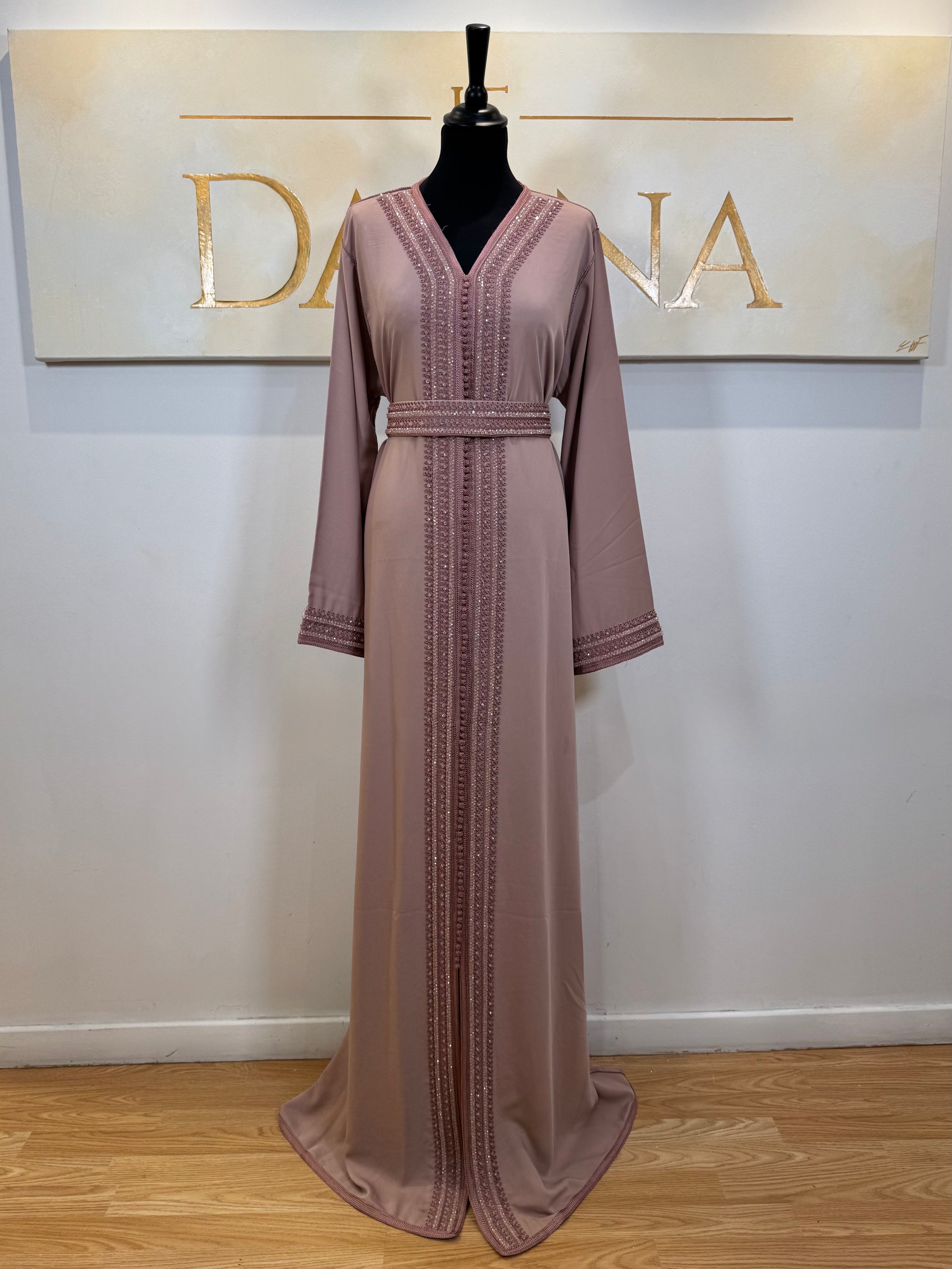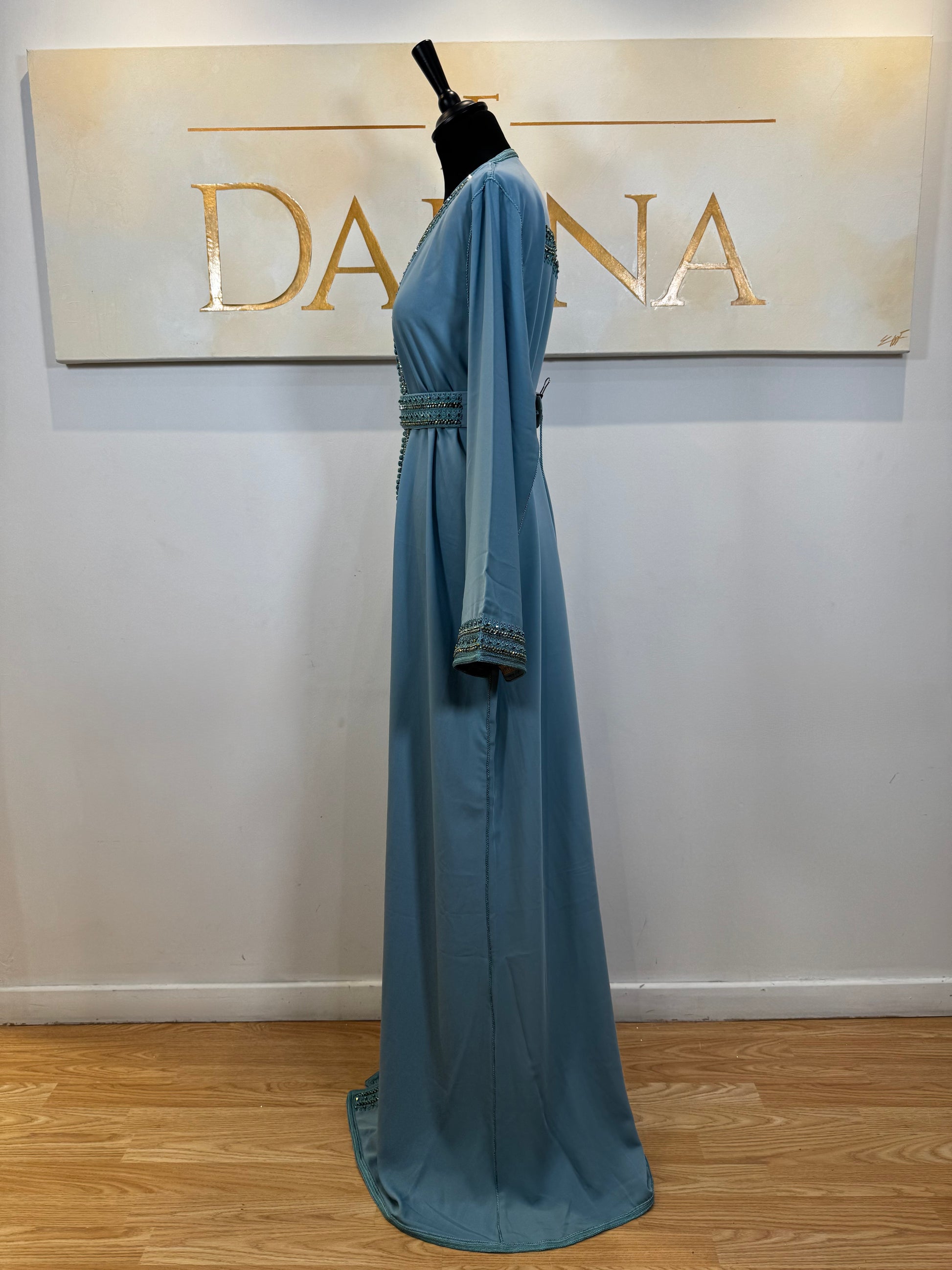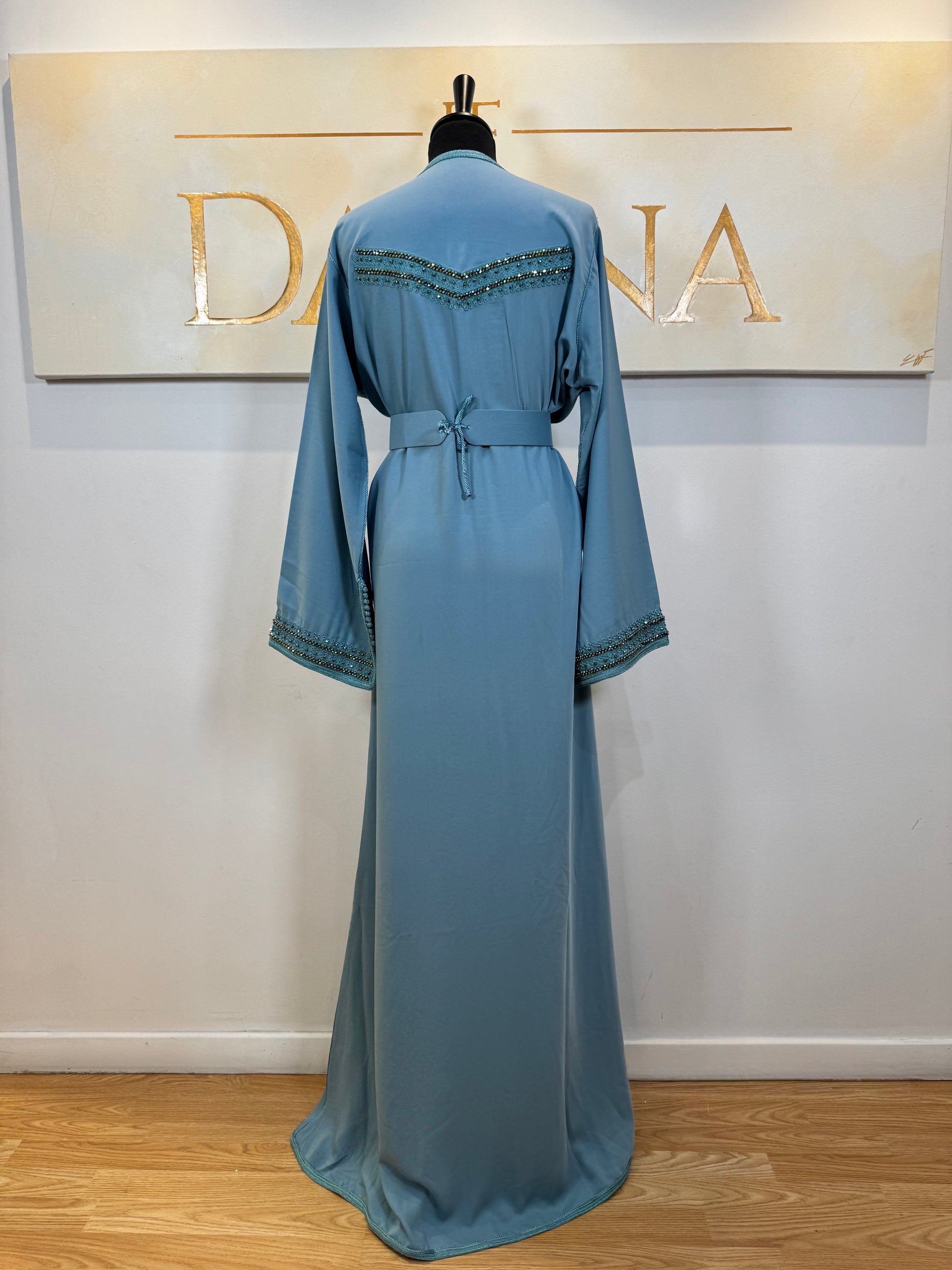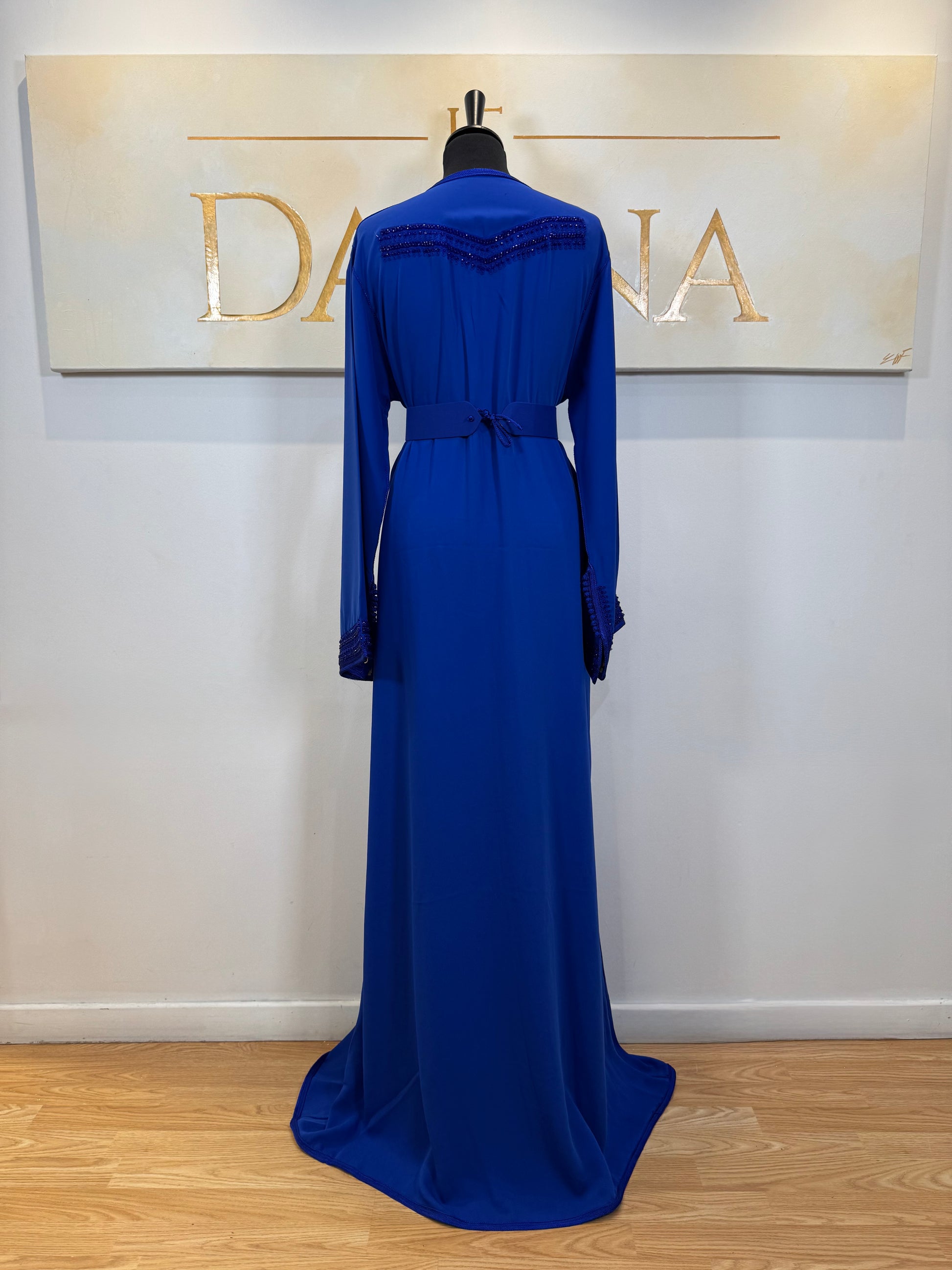 Cette robe se distingue par sa coupe fluide et épurée, sublimée par de délicats détails brodés ton sur ton le long de l’encolure, de la ceinture et des manches. Son tissu léger offre un tombé élégant et un confort optimal, idéal pour les cérémonies et événements habillés.